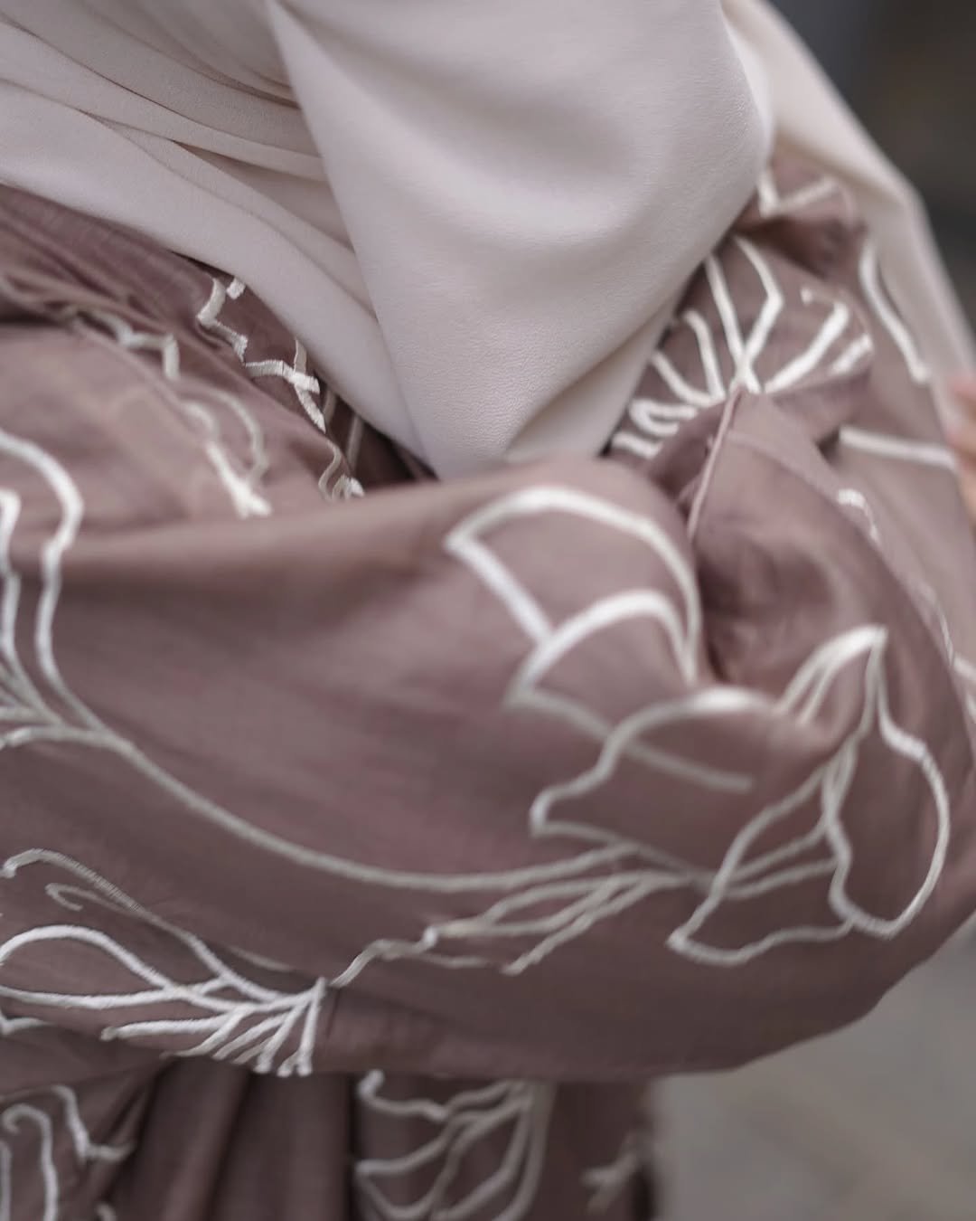 Premium Chanderi Embroidered Abaya Set (Grey Shade)